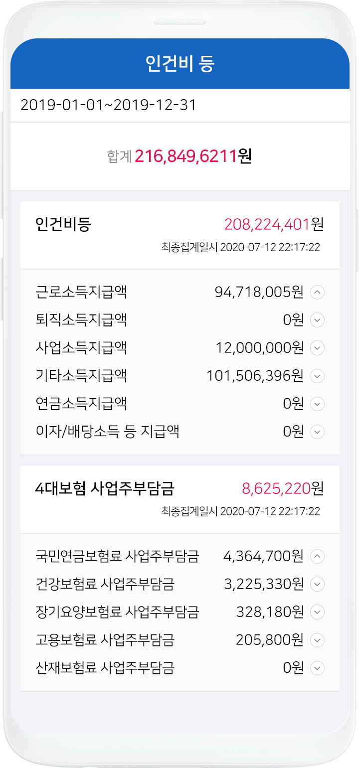퇴직소득 지급액, 사업소득 지급액 등을 간편하게 조회!